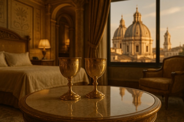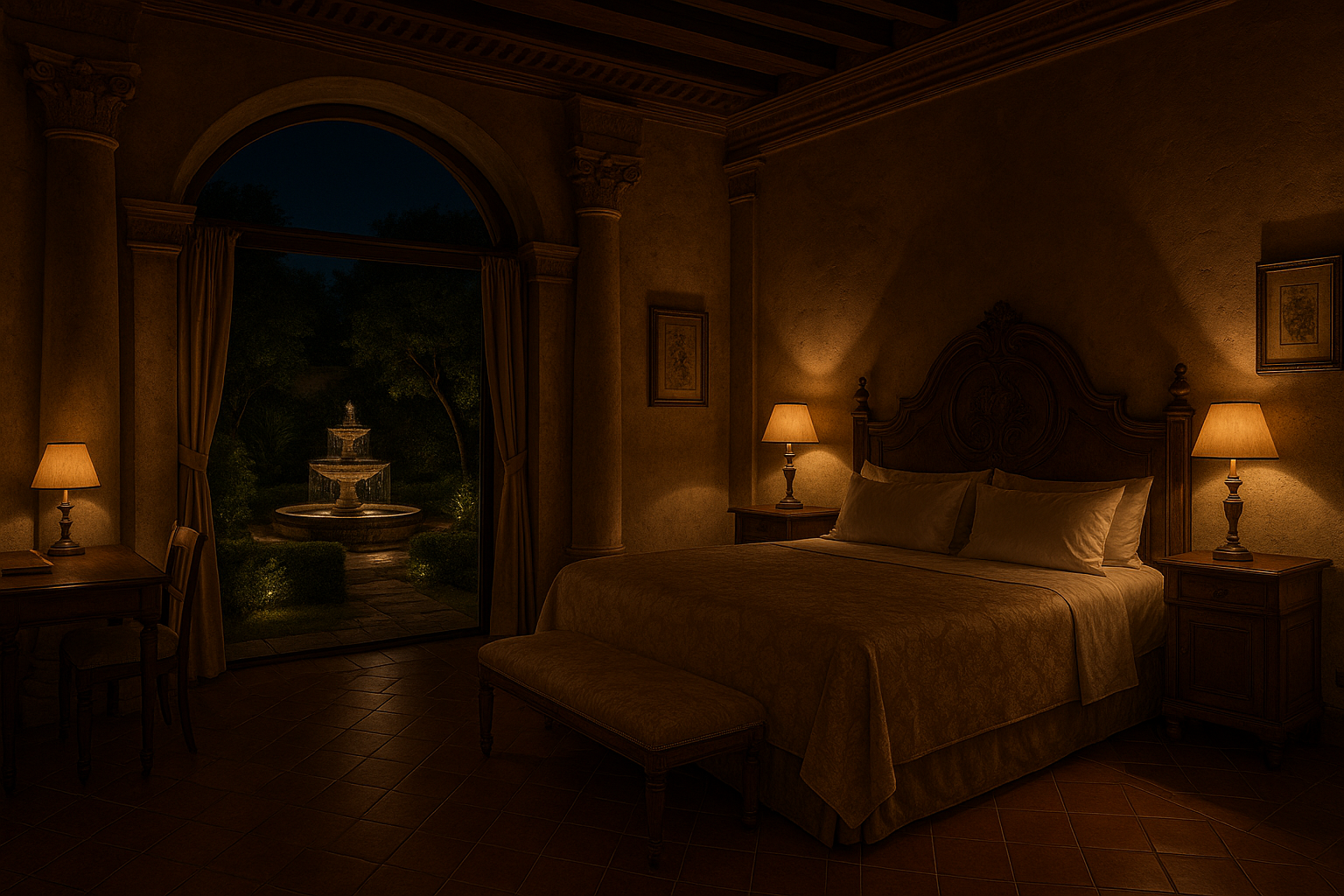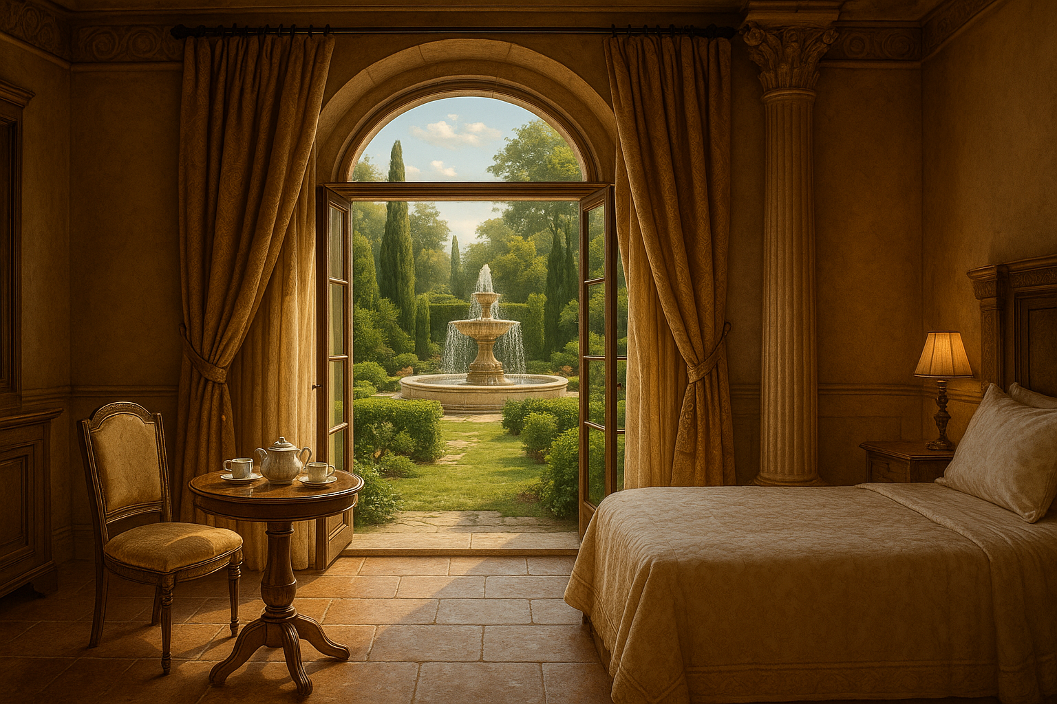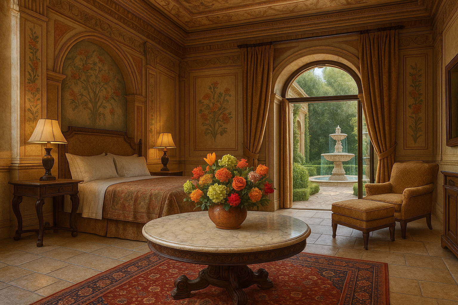 Extras: Sala de jantar, biblioteca privada, banheira romana dupla, serviço de mordomo.